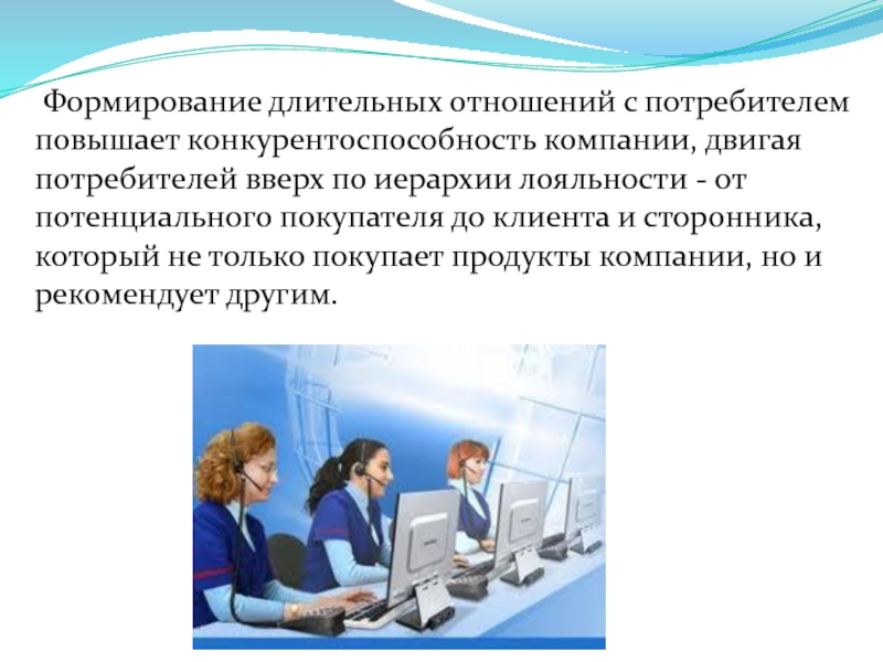конкурентоспособность компании, двигая потребителей вверх по иерархии лояльности - от