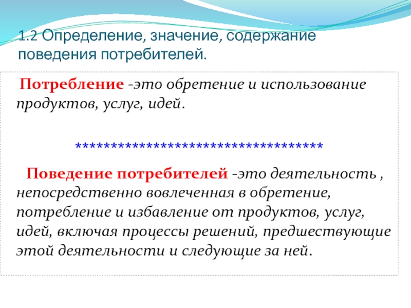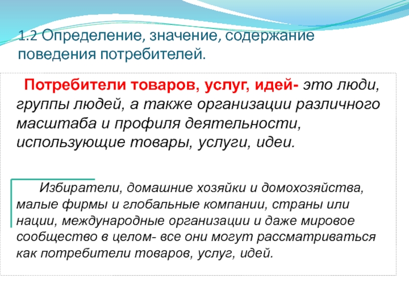 Слайд 51.2 Определение, значение, содержание поведения потребителей.