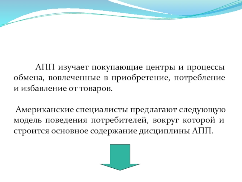 Американские специалисты предлагают следующую модель поведения потребителей, вокруг которой и строится основное содержание дисциплины АПП.