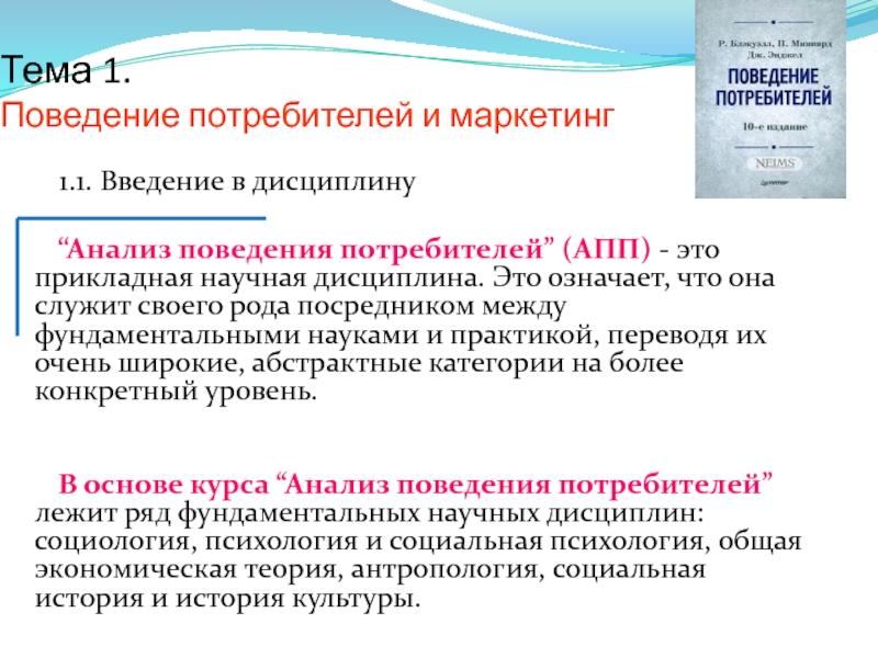 В основе курса “Анализ поведения потребителей” лежит ряд фундаментальных научных дисциплин: социология, психология и социальная психология, общая экономическая теория, антропология, социальная история и история культуры.