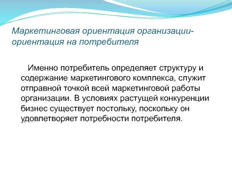 Слайд 13Маркетинговая ориентация организации- ориентация на потребителя