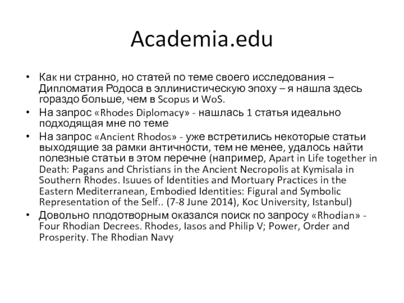 Чем этот сайт удобен именно для меня: не на все интересующие меня журналы по моей специальности есть подписка у СПбГУ, таким образом, я лишена возможности в полной мере следить за новыми публикациями и открытиями в моей тебе. Однако на этом сайте многие ученые выкладывают статьи совершенно безвозмездно, в связи с чем появляется возможность ознакомиться с рядом статей, доступа к которым у меня вообще не должно было быть.