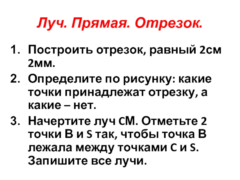 2 точки В и S так, чтобы точка В лежала между точками C и S. Запишите все лучи.