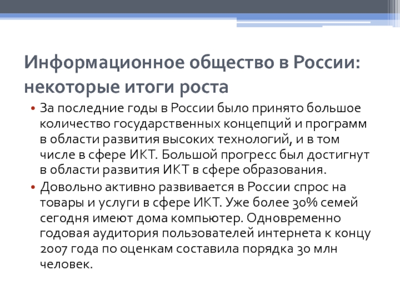 Слайд 5Информационное общество в России: некоторые итоги роста
