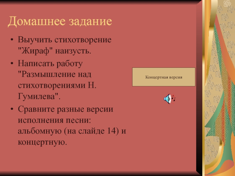 Сравните разные версии исполнения песни: альбомную (на слайде 14) и