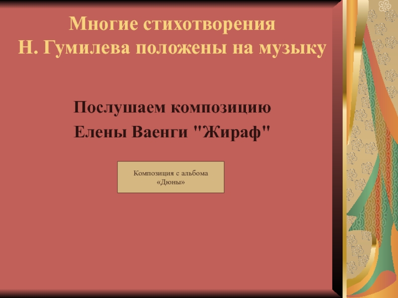 знакомство с великим таинством поэтического текста Н. Гумилева через