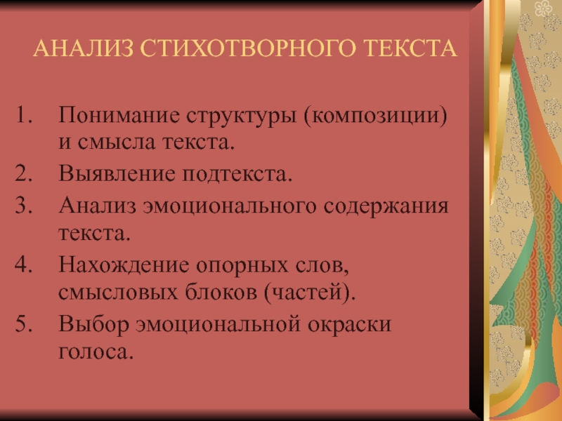 Слайд 12АНАЛИЗ СТИХОТВОРНОГО ТЕКСТА