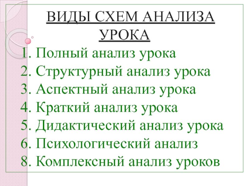 Слайд 3ВИДЫ СХЕМ АНАЛИЗА УРОКА