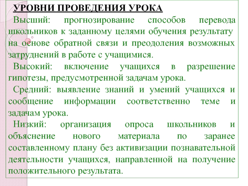 Слайд 17УРОВНИ ПРОВЕДЕНИЯ УРОКА