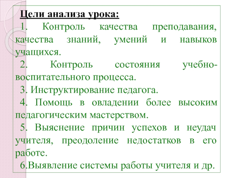 6.Выявление системы работы учителя и др.