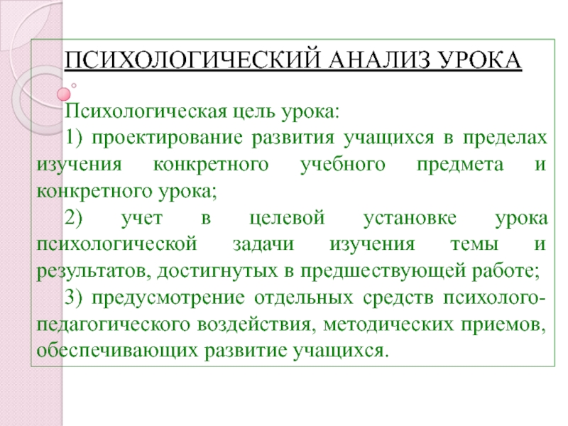Слайд 9ПСИХОЛОГИЧЕСКИЙ АНАЛИЗ УРОКА