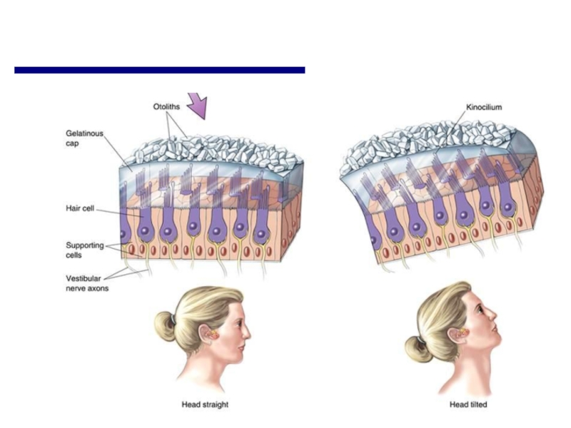 Psychology 355Адекватные раздражители отолитовых рецепторовЛинейное ускорениеСила гравитацииИзменение положения головыЦентробежная сила