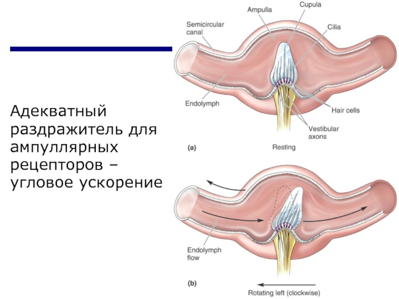 Слайд 6Адекватный раздражитель для ампуллярных рецепторов – угловое ускорение