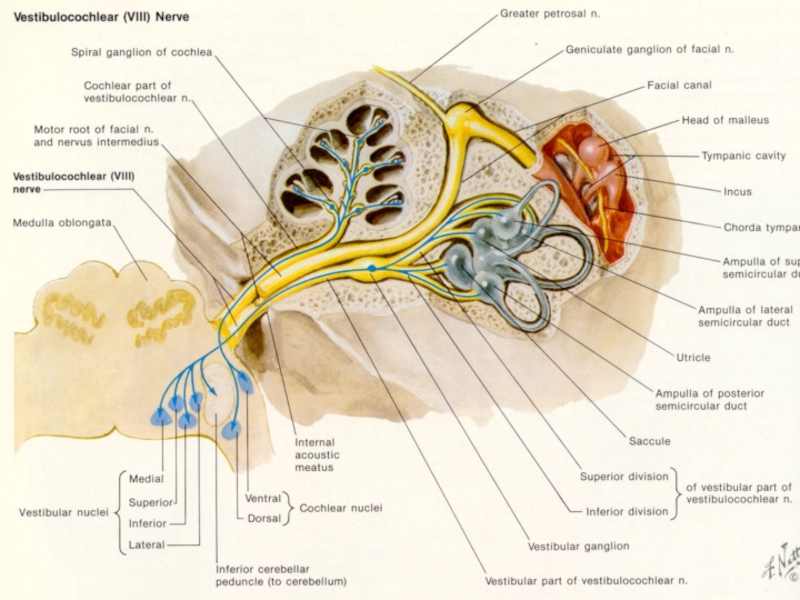 Слайд 12Вестибулярные ядра Бехтерева (верхнее), Швальбе (медиальное), Дейтерса (латеральное), Роллера (нижнее)