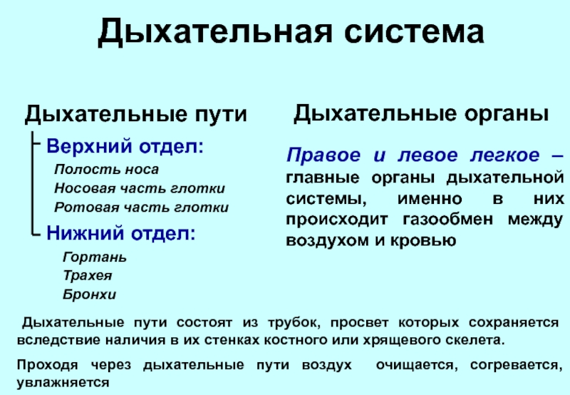 Дыхательные пути состоят из трубок, просвет которых сохраняется вследствие наличия в их стенках костного или хрящевого скелета.