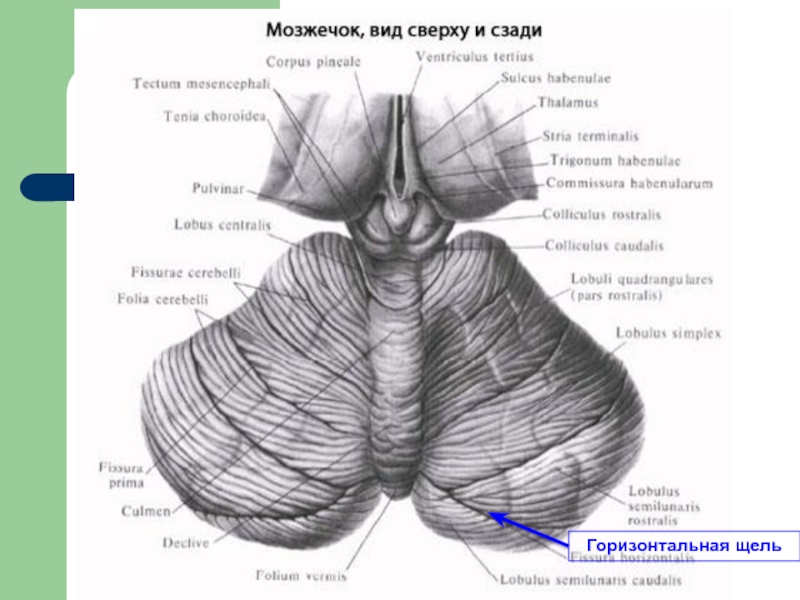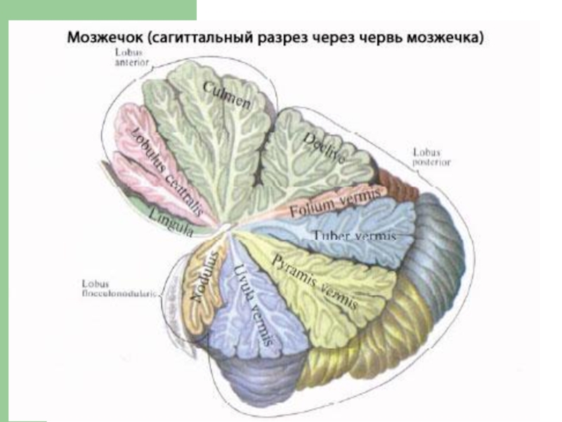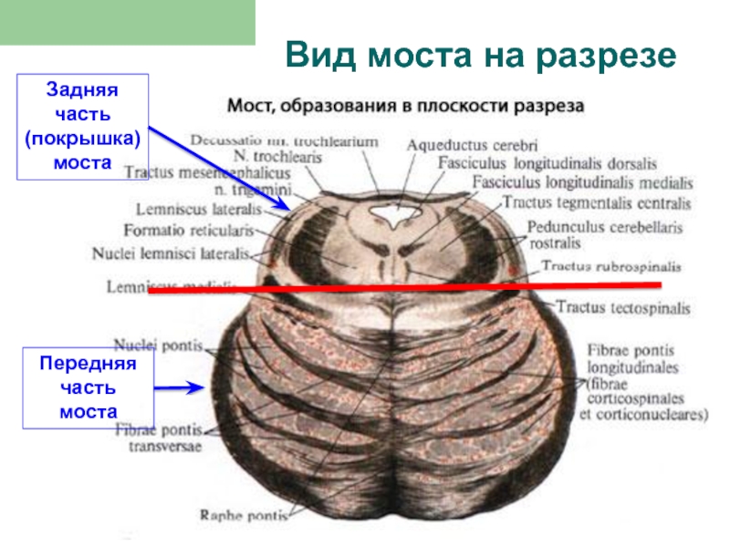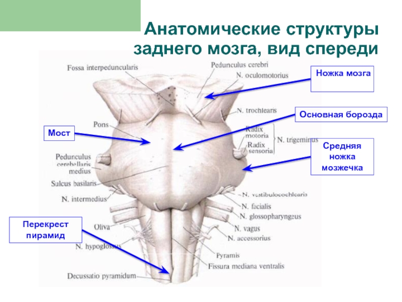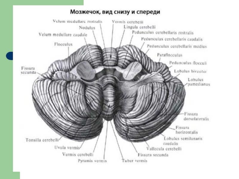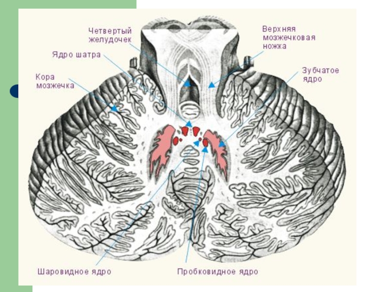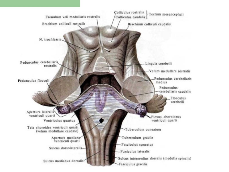 Слайд 29Строение заднего мозга (Варолиева моста и мозжечка)