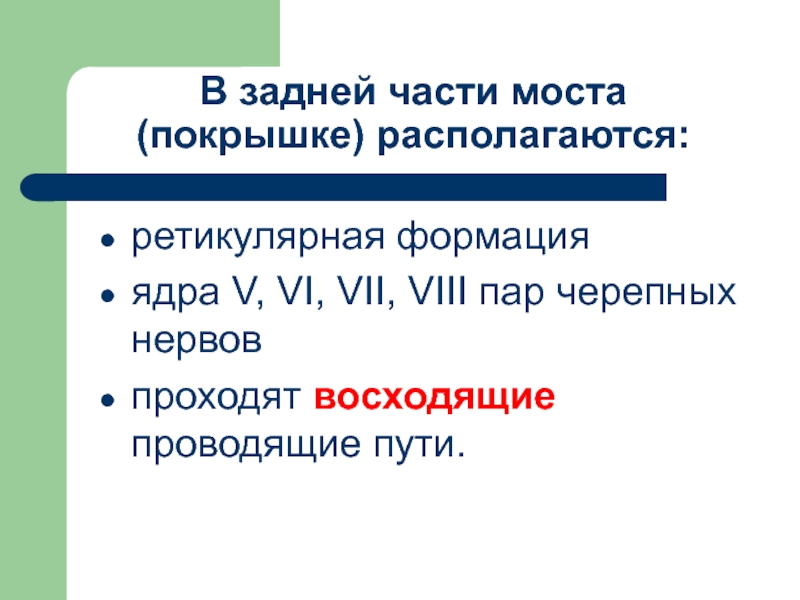(нисходящие) располагаются в передних отделах продолговатого мозга Чувствительные (восходящие) лежат более дорсально.