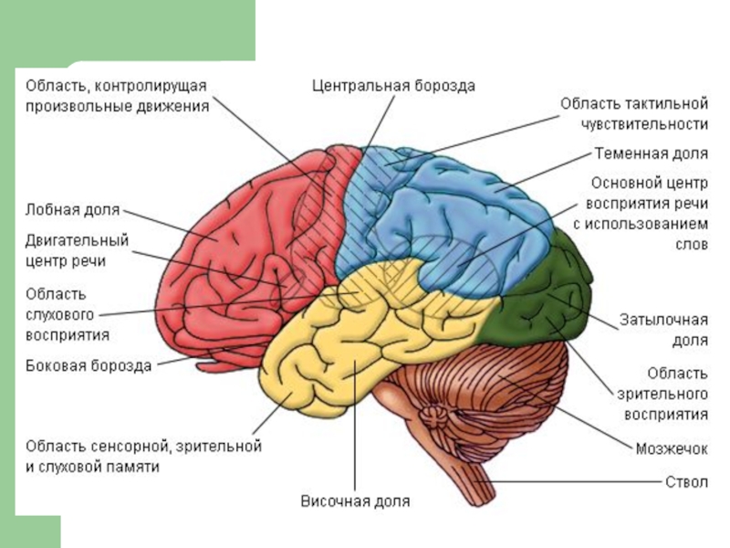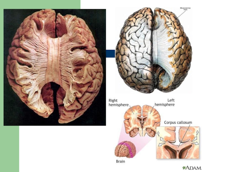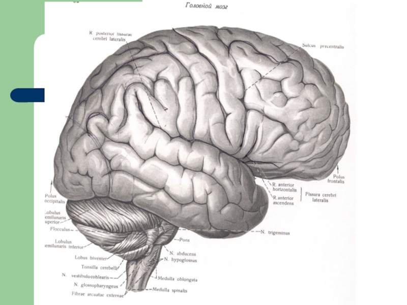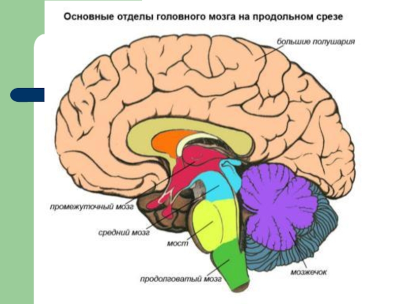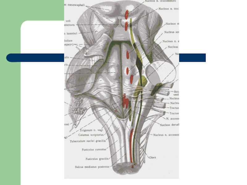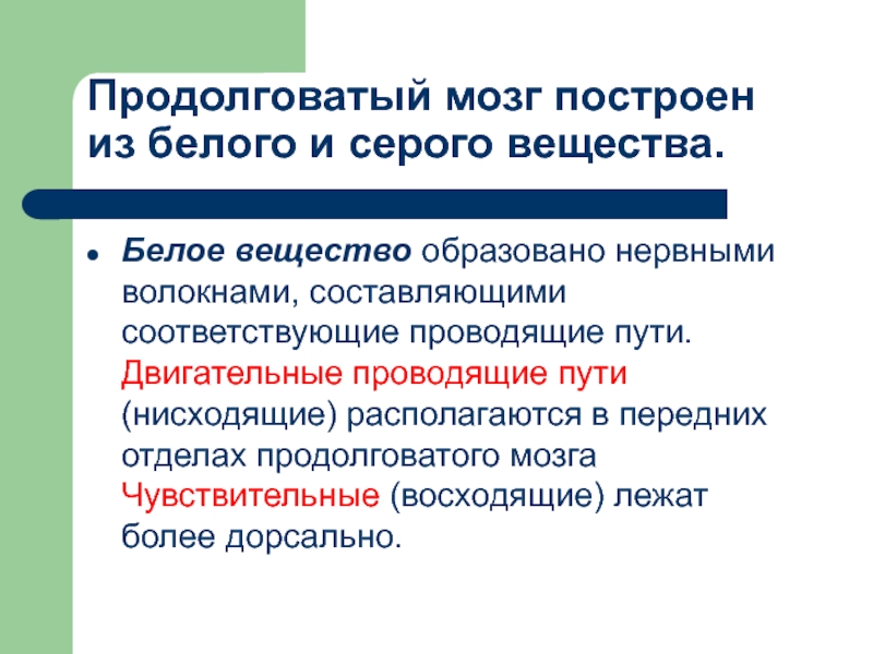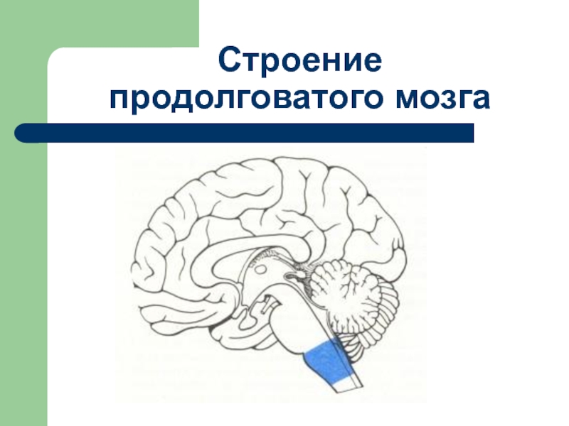 Слайд 25Продолговатый мозг построен из белого и серого вещества.