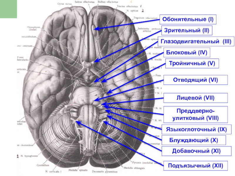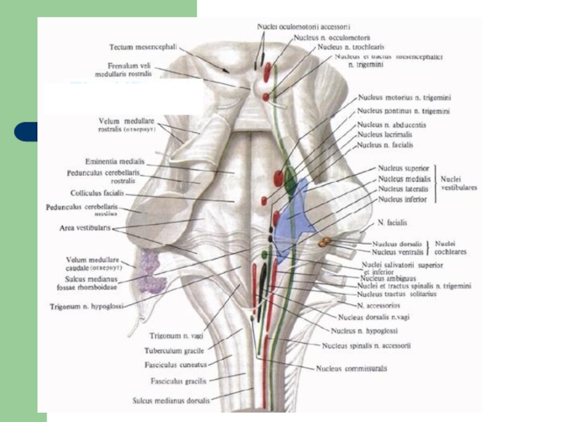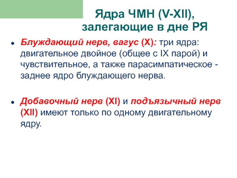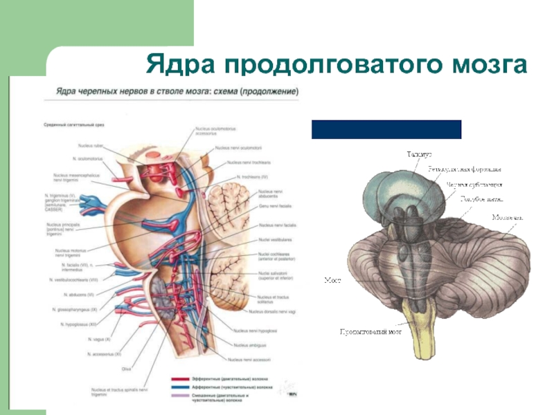 продолговатого мозга представлено ядрами IX, X, XI, XII пар черепных
