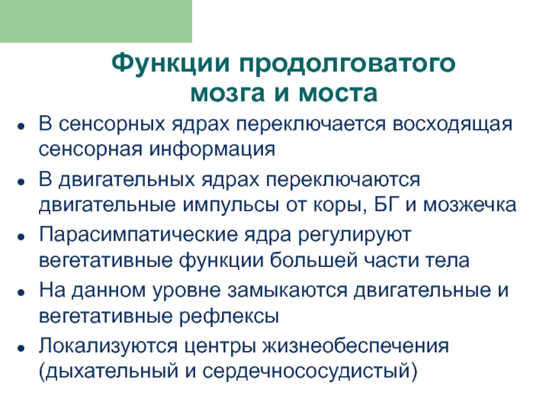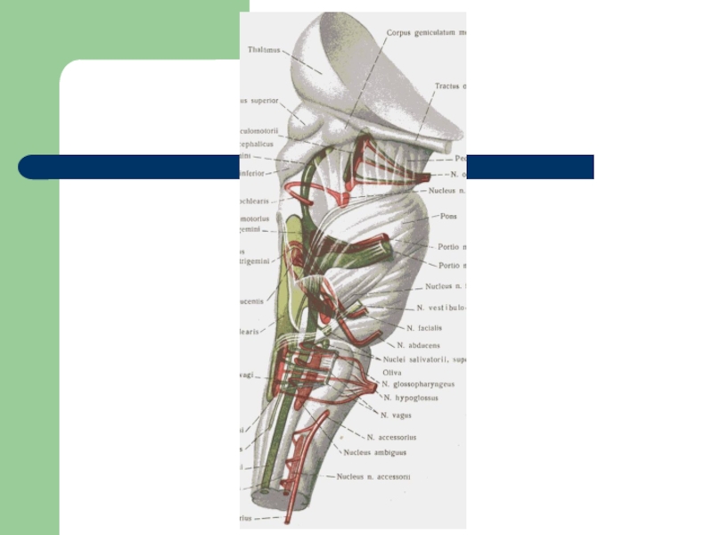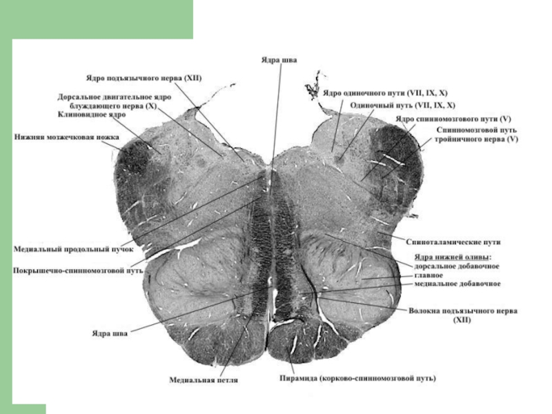нервов, ядрами олив, ретикулярной формации, центрами дыхания и кровообращения.