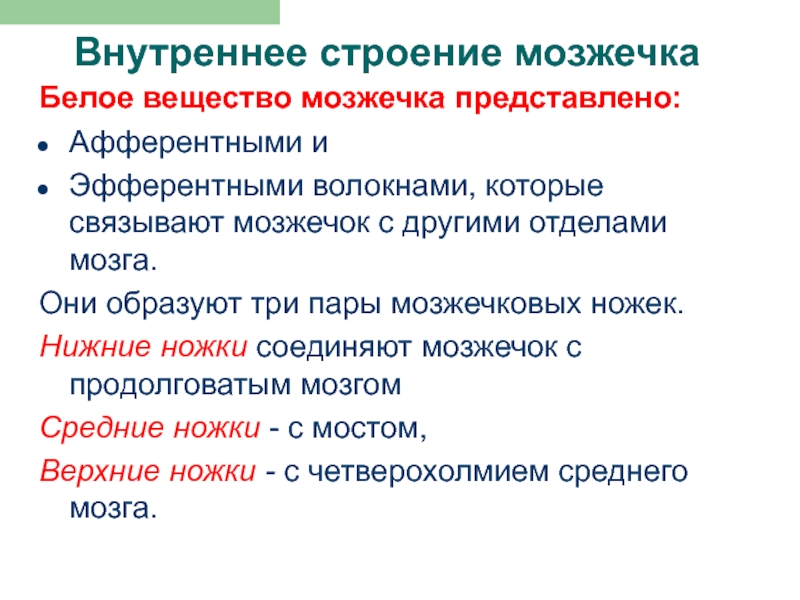 Нижние ножки соединяют мозжечок с продолговатым мозгом