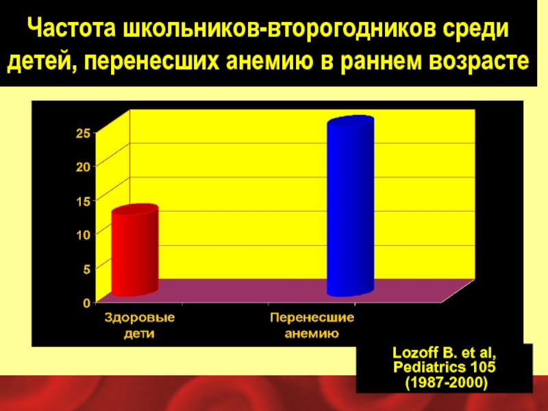 Слайд 15Частота школьников-второгодников среди детей, перенесших анемию в раннем возрасте