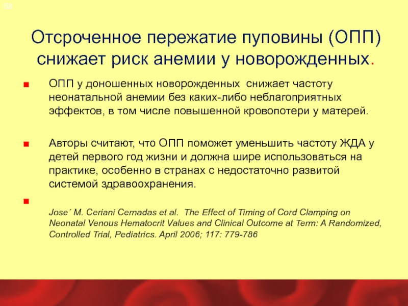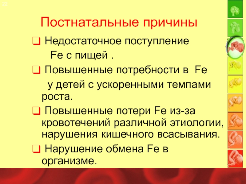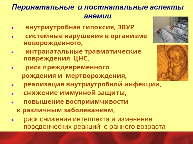 Слайд 77Перинатальные и постнатальные аспекты анемии