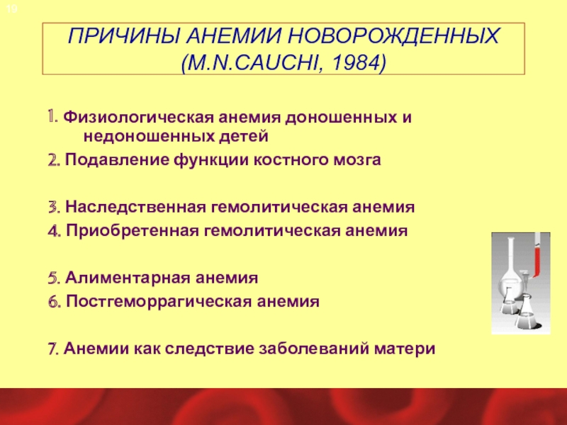 ПРИЧИНЫ АНЕМИИ НОВОРОЖДЕННЫХ (M.N.CAUCHI, 1984)