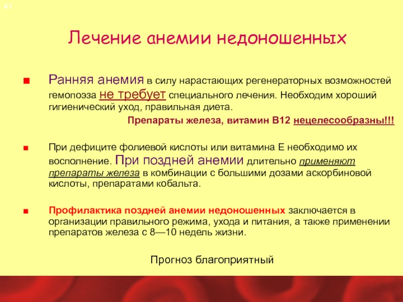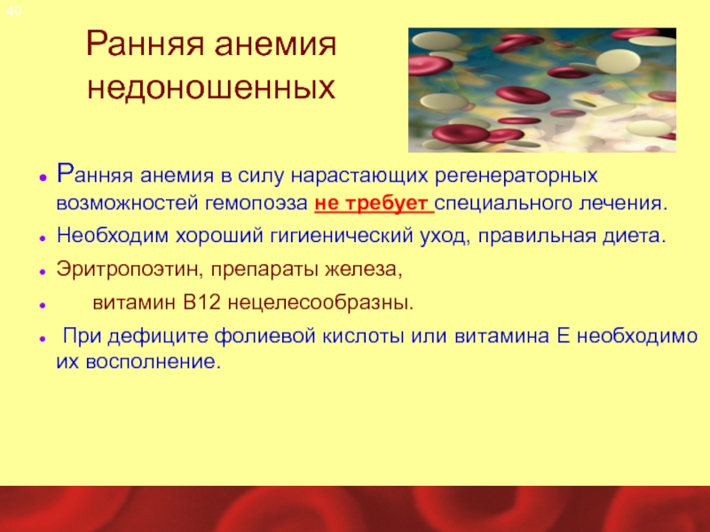 эритропоэтина у недоношенных детей составляет 90-70 г/л – критический для