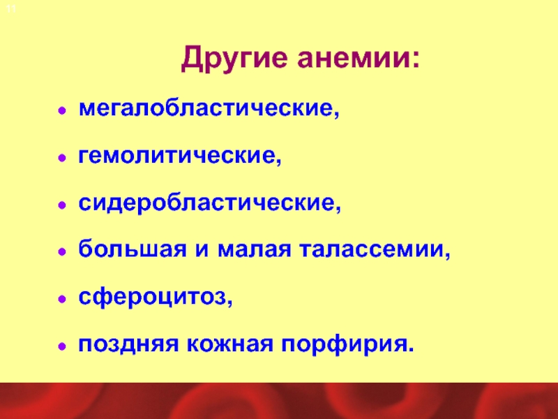 Слайд 7У детей и взрослых анемия как самостоятельное заболевание чаще всего