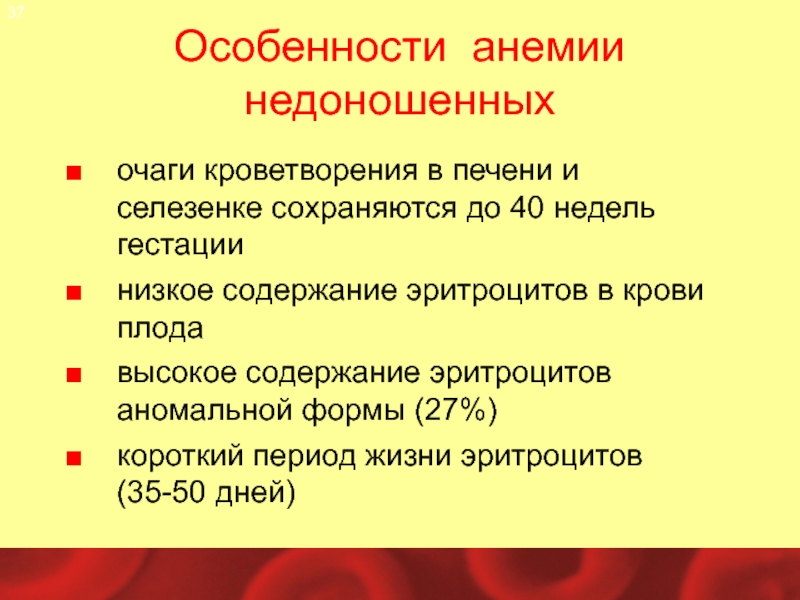 Недоношенные дети, т. к. кроветворение с 2,5-3-мес. вступает в