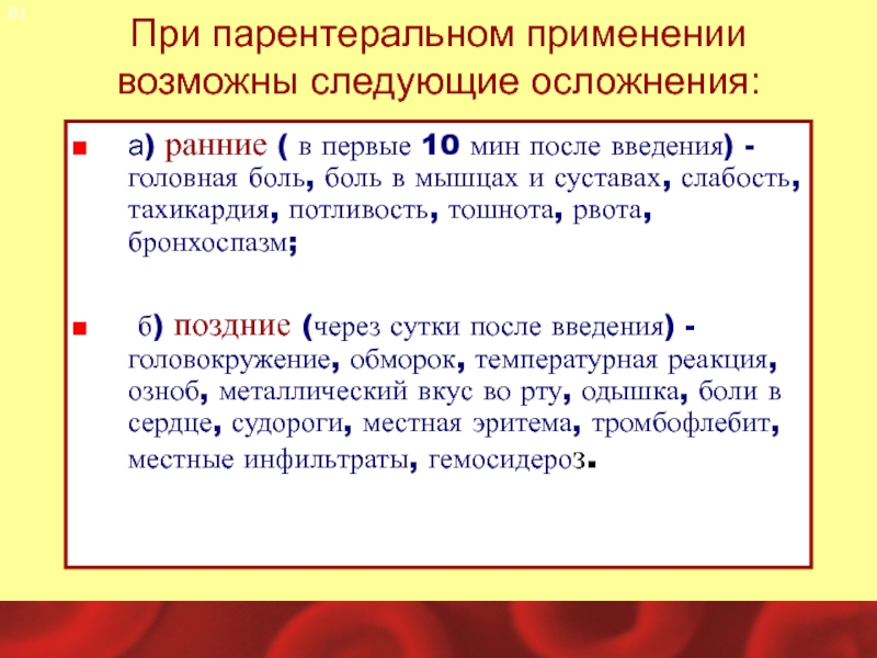 иммуносупрессия, угнетение собственного эритропоэза, временный эффект с возможным рецидивом анемии, волемическая перегрузка, метаболические нарушения и другие.