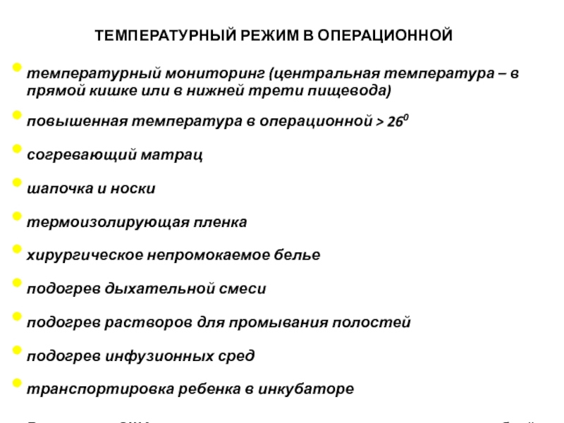 Слайд 4ТЕМПЕРАТУРНЫЙ РЕЖИМ В ОПЕРАЦИОННОЙ