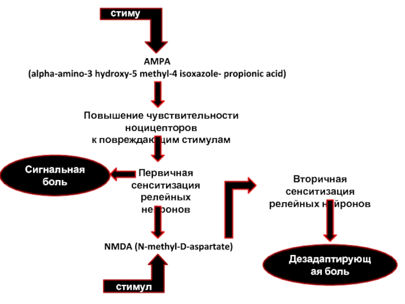 Слайд 5КОМПОНЕНТЫ ОБЩЕЙ РЕАКЦИИ НА БОЛЬ: