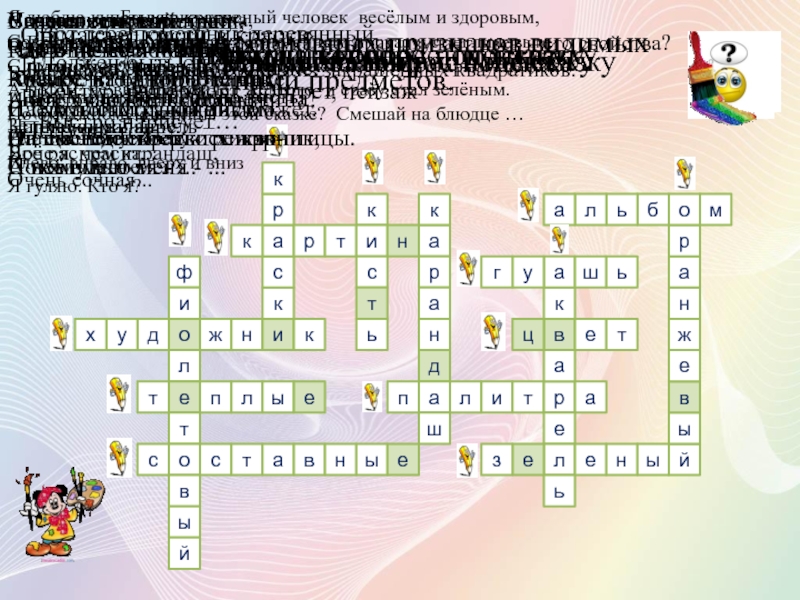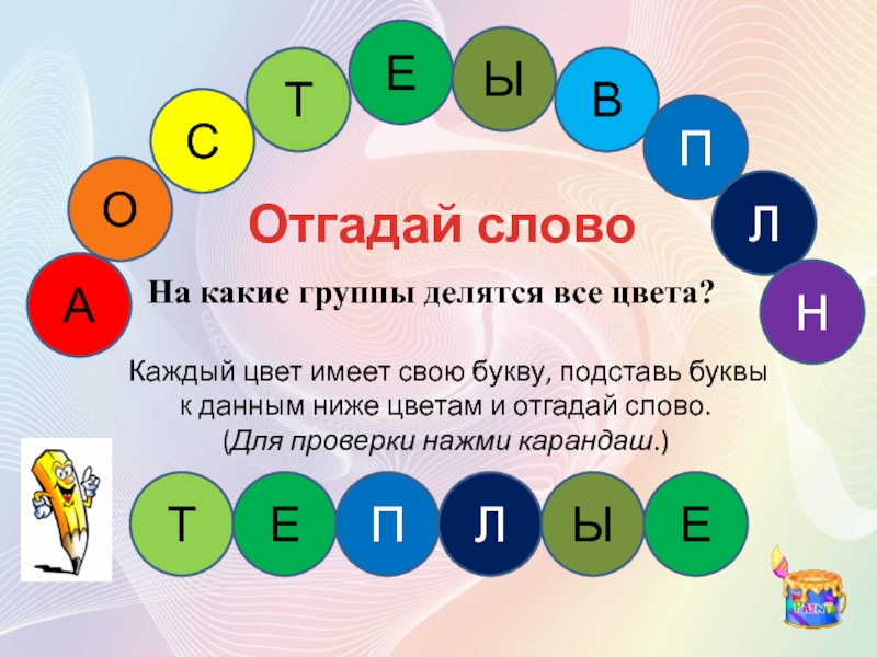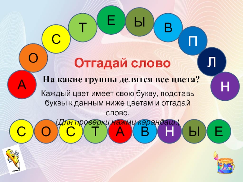 Вопрос: Как называется наука, которая изучает цвет и его свойства? Не знаете? Выпишем буквы из закрашенных квадратиков.