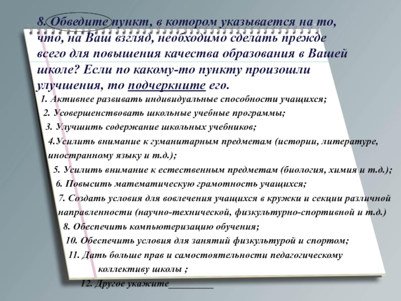 4.Усилить внимание к гуманитарным предметам (истории, литературе,