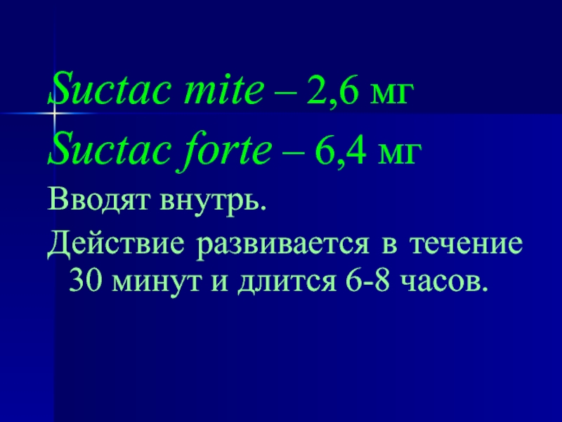 Эффект развивается через 30 минут и длится 5-8 часов.