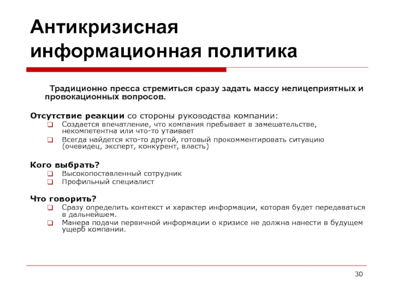 Кризис: Порождение порочащих слухов, дезинформирование органов власти, провокации и т. п.