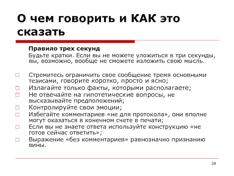 Избегайте комментариев «не для протокола», они вполне могут оказаться в конечном счете в печати;
