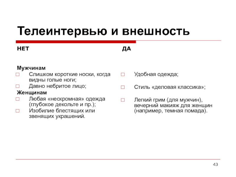 Слайд 43Телеинтервью и внешность