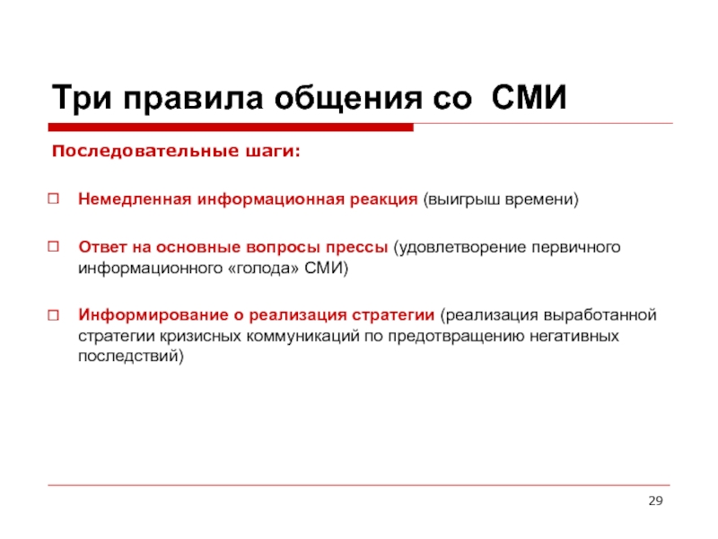 времени на реагирование (авиакатастрофы, смерть руководителя и т.д.)