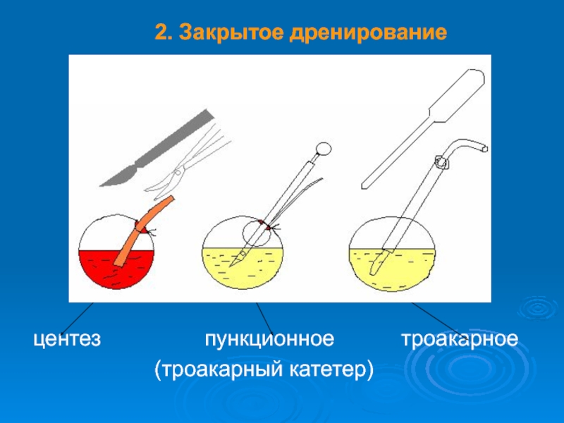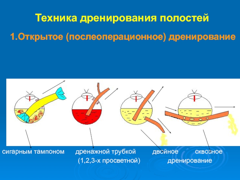 Слайд 12Активное дренирование полостей в различные фазы раневого процесса