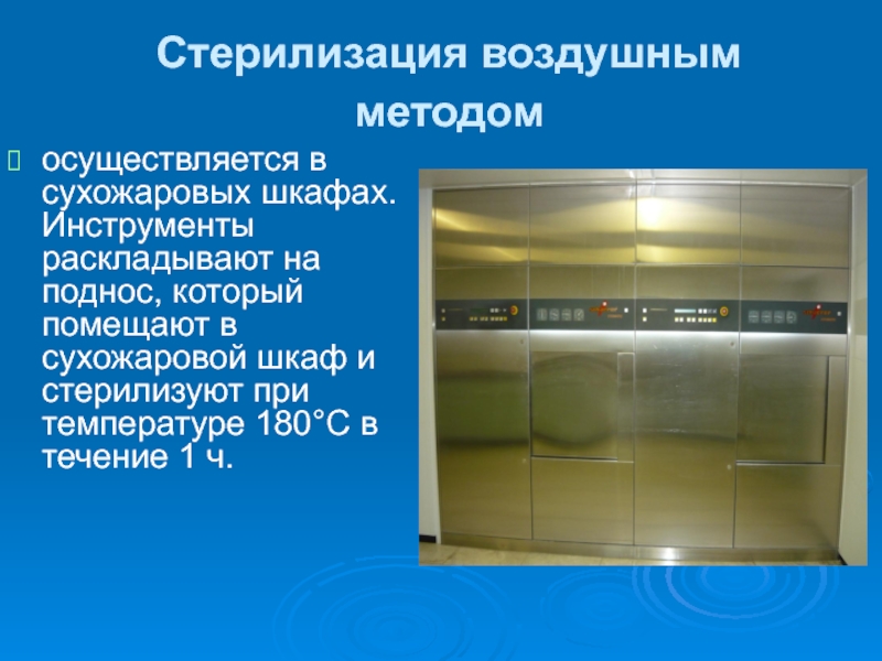 осуществляется в сухожаровых шкафах. Инструменты раскладывают на