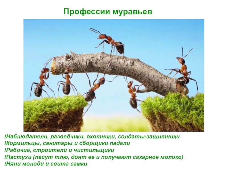 Пастухи (пасут тлю, доят ее и получают сахарное молоко)