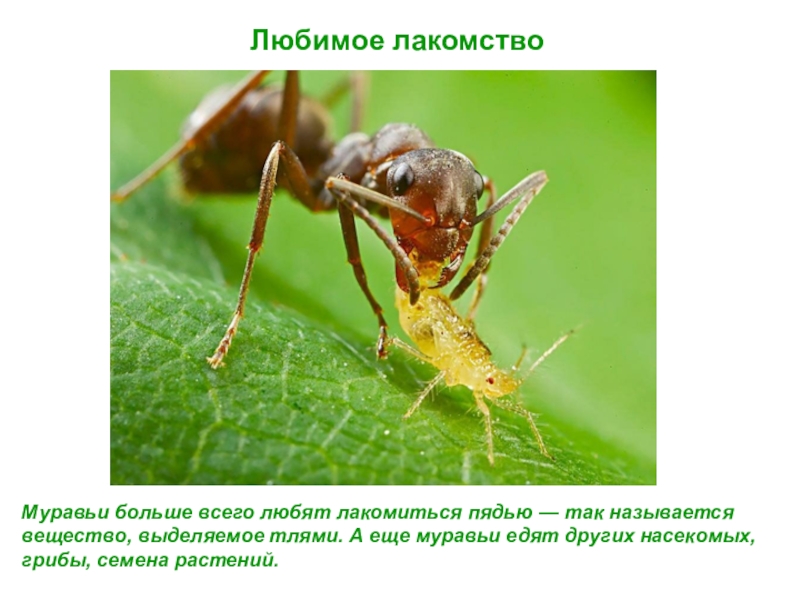 вещество, выделяемое тлями. А еще муравьи едят других насекомых, грибы,