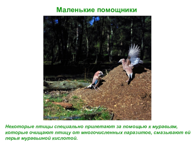 очищают птицу от многочисленных паразитов, смазывают ей перья муравьиной кислотой.