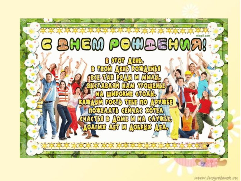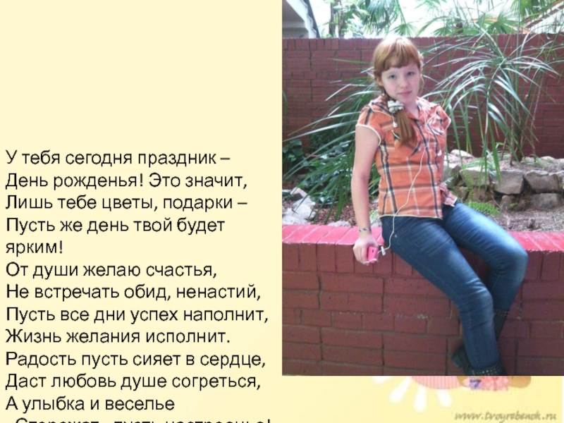 Слайд 2 У тебя сегодня праздник – День рожденья! Это значит, Лишь тебе цветы,