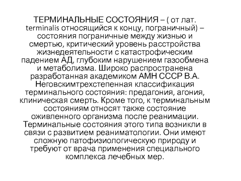 Слайд 2ТЕРМИНАЛЬНЫЕ СОСТОЯНИЯ – ( от лат. terminalis относящийся к концу,
