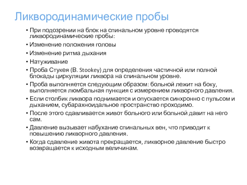 Слайд 26Ликвородинамические пробы