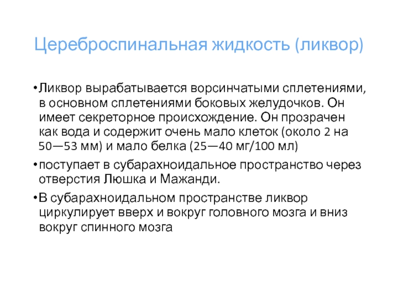 Слайд 14Цереброспинальная жидкость (ликвор)
